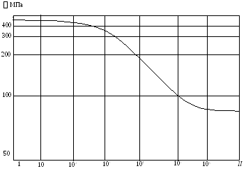 Кривая – N имеет три ярко выраженных участка. Первый участок от нескольких циклов до нескольких тысяч циклов представляет работу материала в условиях упругопластического деформирования. Этот участок характеризует малоцикловую усталость. Данный участок характеризуется жестким нагружением и практически линейной зависимостью убывания допустимых напряжений от числа циклов.