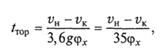 где vH и vK — значения скорости автомобиля соответственно в начале и конце торможения, выраженные в м/с, или