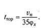 где t‘p = 0,2. 1,5 с — время реакции водителя, зависящее от его возраста, квалификации, утомляемости и т.д.; tnp — время срабатывания тормозного привода от момента нажатия на тормозную Педаль до начала действия тормозных механизмов, зависящее от конструкции тормозного привода и его технического состояния (составляет 0,2 с для гидравлического, 0,6 с — для пневматического, 1,0 с — для автопоезда с пневмоприводом); ty = 0,2. 0,5 с — время увеличения замедления от нуля до максимального значения; vH — скорость автомобиля в начале торможения, км/ч.