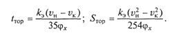 С учетом коэффициента эффективности торможения формулы для определения времени торможения и тормозного пути автомобиля преобразуются к следующему виду: