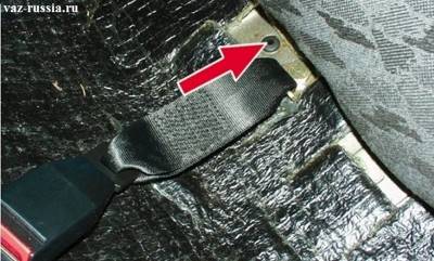 Установка: 1) Во-первых если вы до этого снимали с кузова замок ремня безопасности, то теперь установите его обратно, завернув для этого болт который его удерживает.