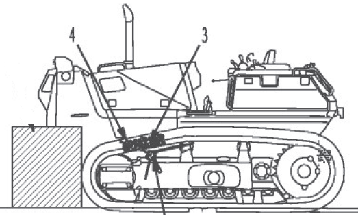 - остановить машину так, чтобы не ослабло натяжение гусениц. Гусеницы должны быть туго натянуты и располагаться прямо, чтобы результаты измерений не были искажены;