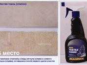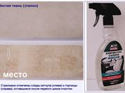 Многофункциональное средство способно чистить не только ткань чехлов и коврики, но и стекло, пластик и керамику. Тест по устранению легких пищевых загрязнений этот экземпляр от концерна Pingo Erzeugnisse прошел на твердую «четверку». В лидеры препарату не дали пробиться оставшиеся пятна от машинного масла, которые все же исчезли после повторной обработки.