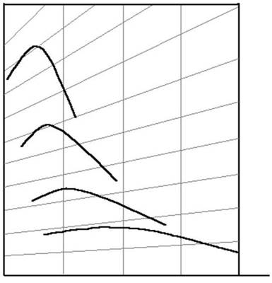 Результаты расчета КПП выводятся в табличном и графическом виде. Графики позволяют произвести визуальный анализ, оценить «длину» каждой передачи, и «разрыв» между ними (на сколько падают обороты двигателя при переключении на повышенную передачу)
