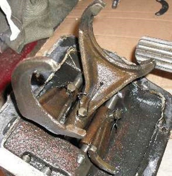 Вскрытие КПП показало вылезший сухарь из муфты шестерни 3-й и 4-й передач: